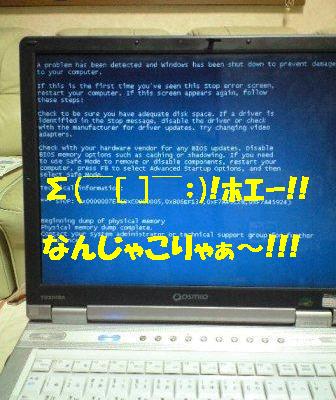 恐怖のブルースクリーン(←って名前でしたっけ???)。